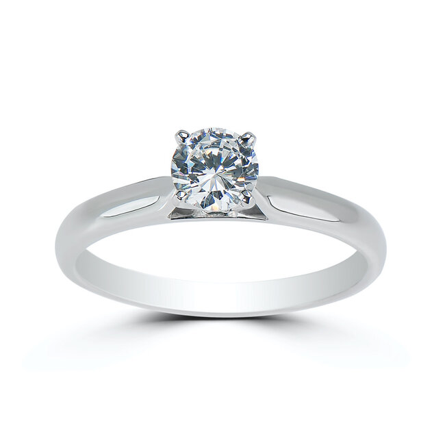 14 Karat White Gold Solitaire Engagement Ring Set With One 0.40ct Round Brilliant Cut Diamond, FG in Colour, SI2 in Clarity, G Cut.