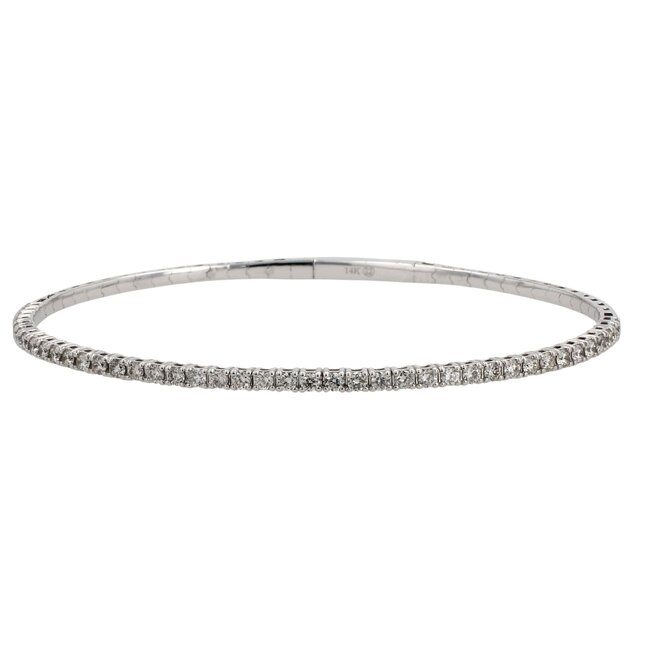 14 Karat White Gold Flex Bangle Featuring 1.50ctw Round Brilliant Cut Diamonds, IJ in Colour, SI2 in Clarity.