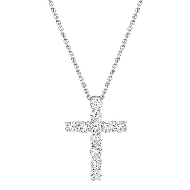 This shimmering 14k white gold cross necklace radiates grace and devotion, adorned with 0.32ctw of brilliant diamonds GH in colour, SI1-2 in clarity. Measures 18".