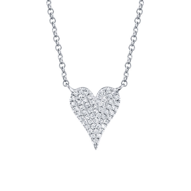 Pave Heart Necklace crafted in luminous 14k white gold, with 0.11ctw round brilliant G-H color, SI clarity diamonds create a radiant open circle that symbolizes unity and everlasting style. Measures 15-18".