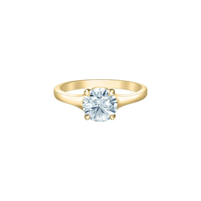 This 14 Karat Yellow Gold Ring Features A 1.50ct Round Brilliant Cut Lab Grown Diamond D in Colour VS1 in Clarity.