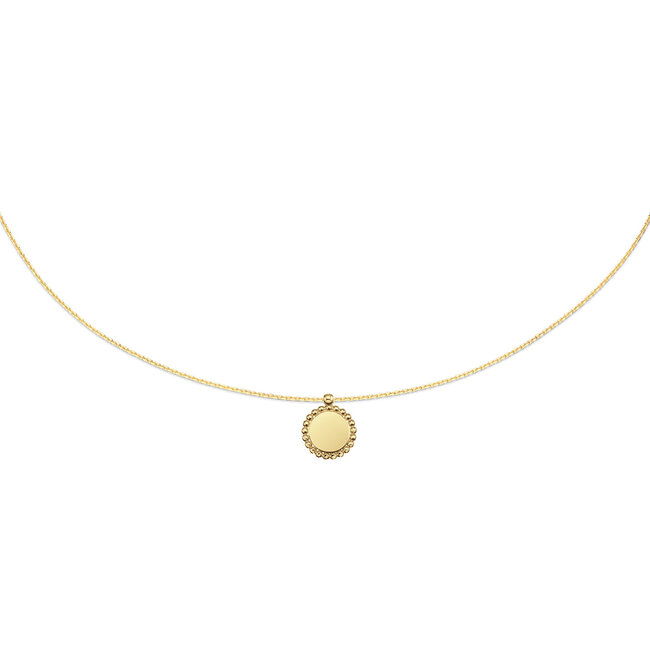 On this 14 karat gold Sunflower Engraving necklace by Jackie, you can engrave anything you want.