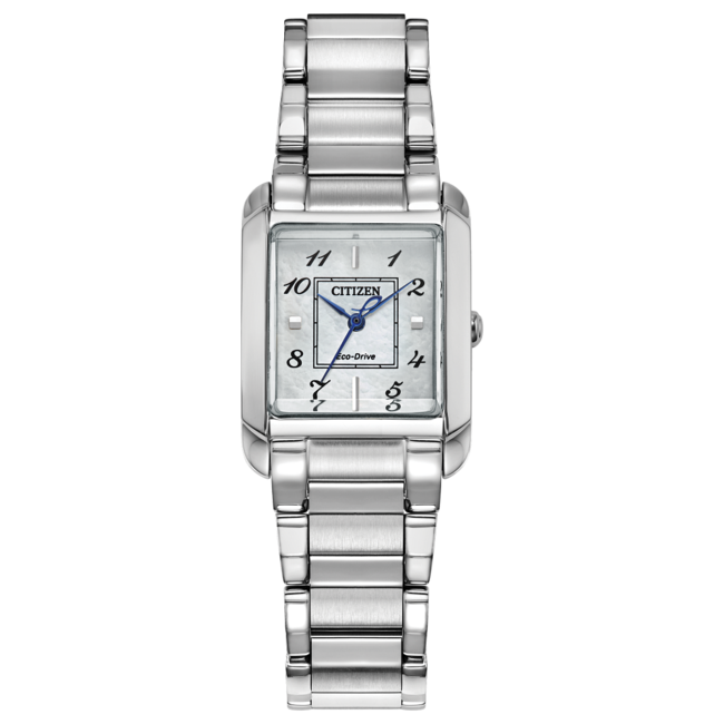 With a design inspired and celebrating feminine motifs in art deco, the distinctive stainless-steel timepiece is a captivating accent on the wrist that's perfect for everyday wear. Featuring a 22mm silver-tone case, Mother of Pearl Dial and Blue hands.