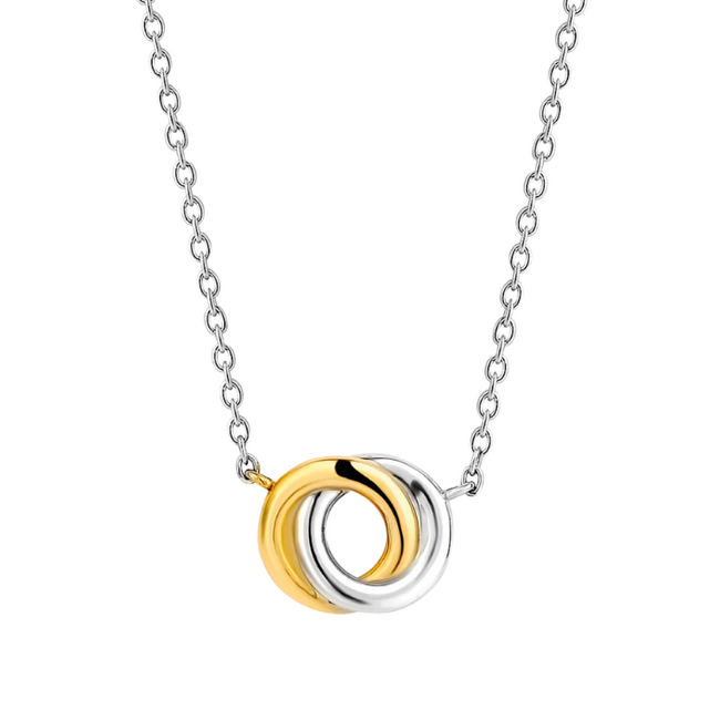 The infinity shape of this TI SENTO silver necklace 3915SY connects yellow-gold plating with silver magic. She will bring the perfect balance of elegance and edge to your style. Let her dangle as you dance. Measures 18"