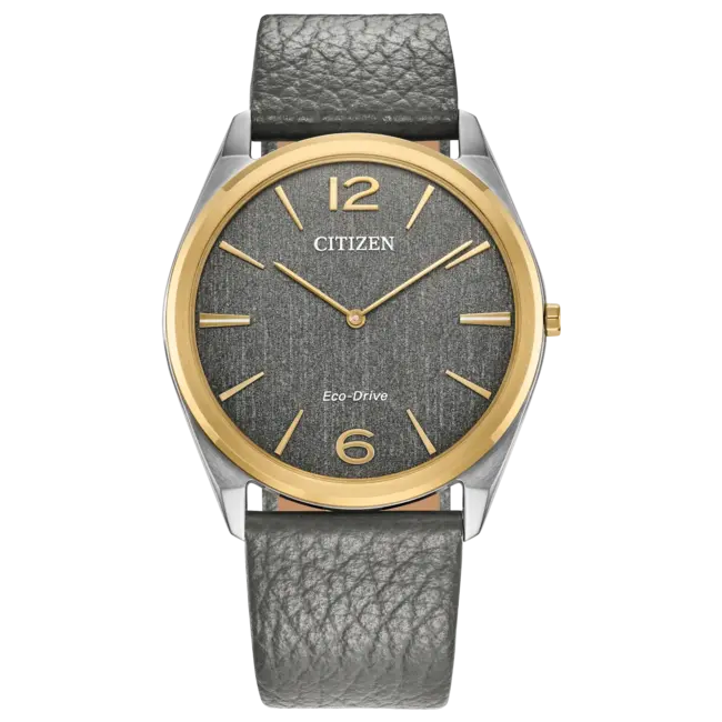 Classic lines and a simple silhouette define the newest addition to the Classic collection. This watch features a versatile two-tone stainless steel 38.4mm case, a two-hand grey metallic powder dial, and a grained grey leather strap with buckle closure.